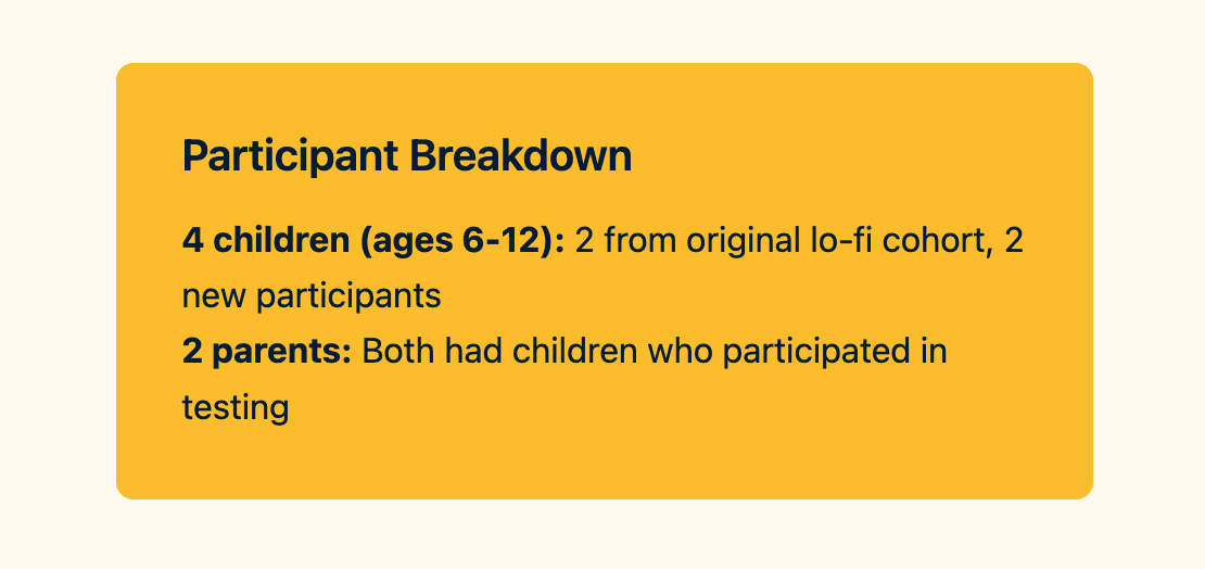 Understanding if kids could navigate five spatial spots wasn't enough. I needed to map their complete emotional journey to reveal moments of delight, confusion, and discovery that functional testing alone would miss.