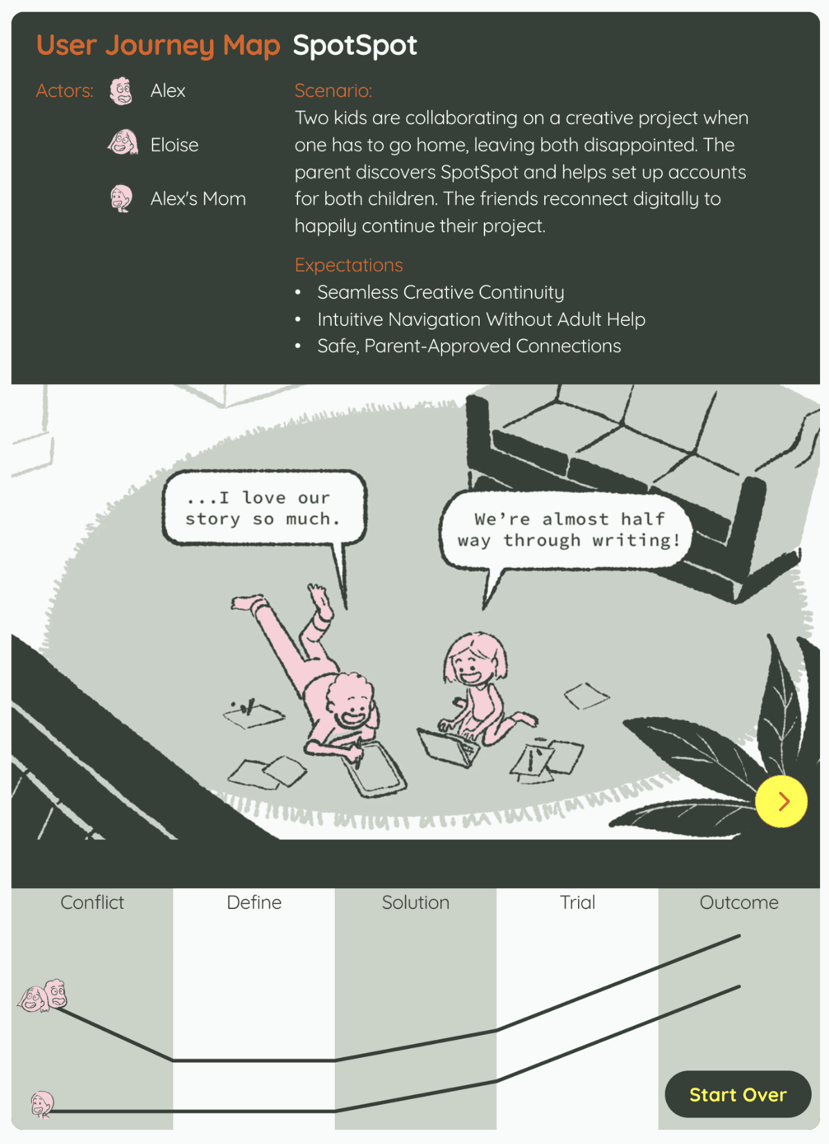 User research and user journey mapping unlocked an understanding of kids 6-12 that resonated with my past career experience, allowing me empathize more deeply and design visuals that resonated.
