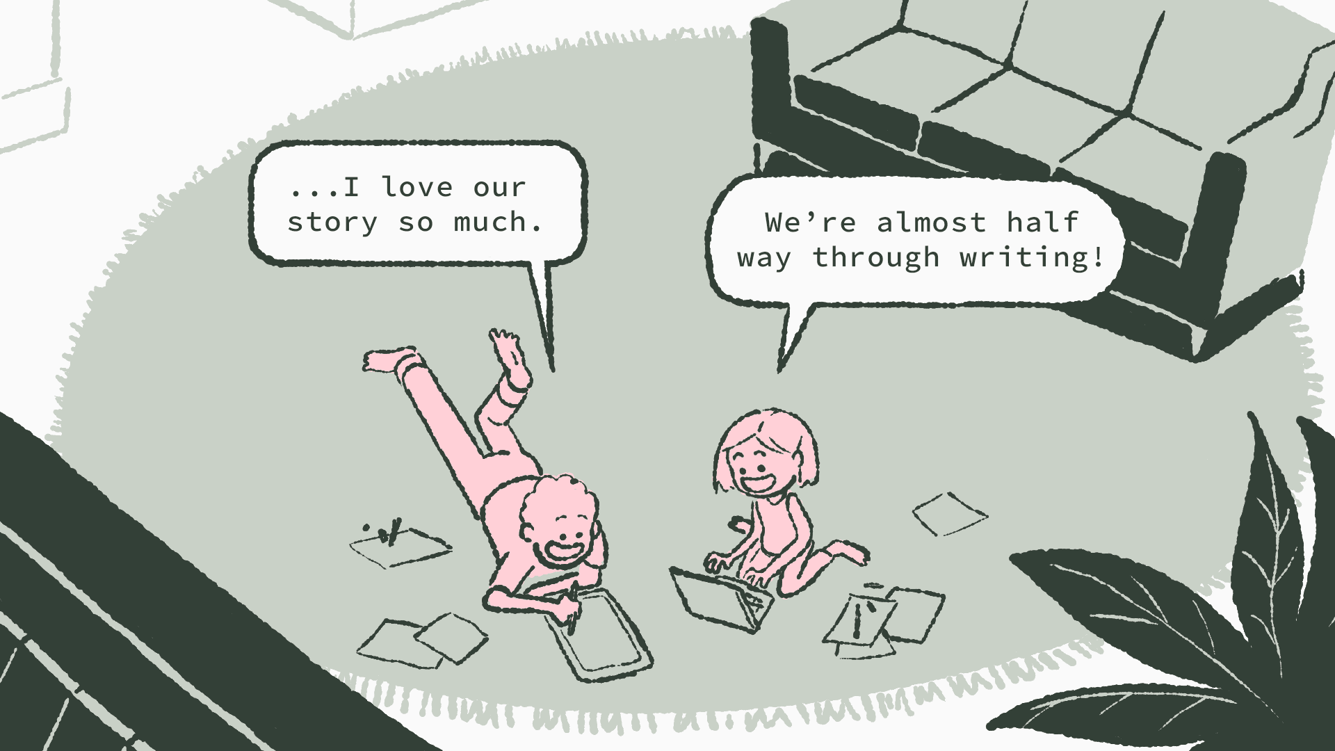 To recreate the safety of that living room creative zone, I decided design elements should feel tactile—like the texture of paper or carpet users would rest their arms on while creating together.