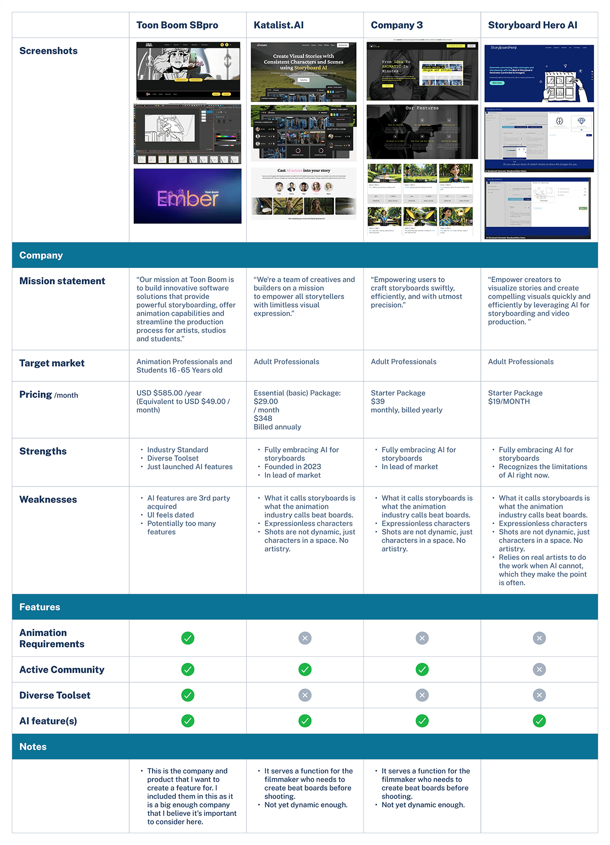 Meanwhile, existing "AI storyboarding" tools produce low-quality beat boards that don't meet professional animation pipeline standards.